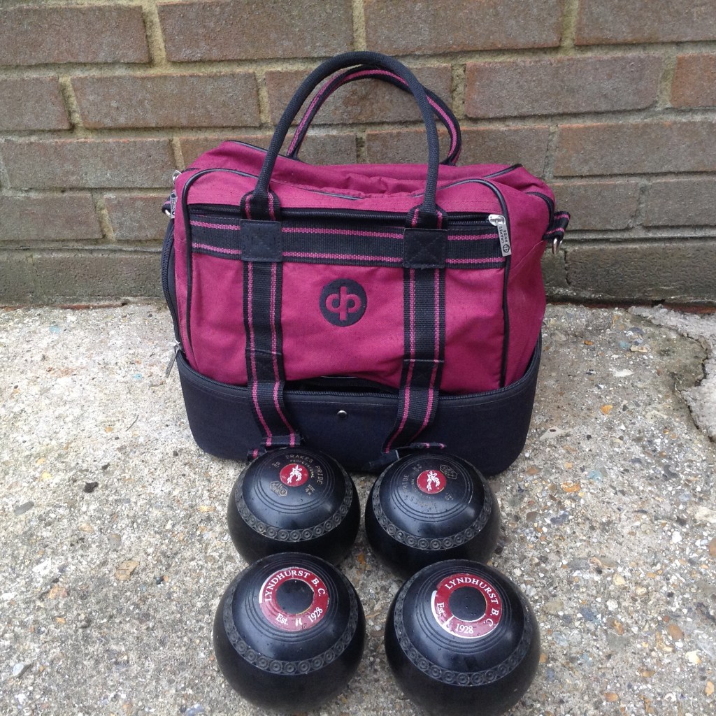 Do you recognise this “Drakes Pride plum coloured bag” and these Drakes Pride, Professionals size 4 M Woods? Have you lost, mislaid or even had them stolen? This bag turned up last September, under a bench in Poole Park not at the Bowling Club there but just in the Park! They were handed into the groundsman of the bowling club by a park worker, who then contacted me via our website. More identification details for you to ponder: the woods have our old Lyndhurst Club stickers on them, however closer examination reveal underneath these of ours are also Totton and Eling stickers. Then on one of the woods a further find there is a blue Caversham, (Reading way) bowls club sticker!